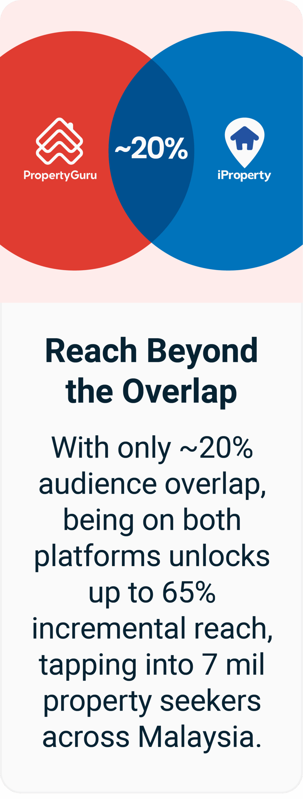 Being on both PropertyGuru and iProperty means you’re tapping into Malaysia’s largest pool of property seekers.