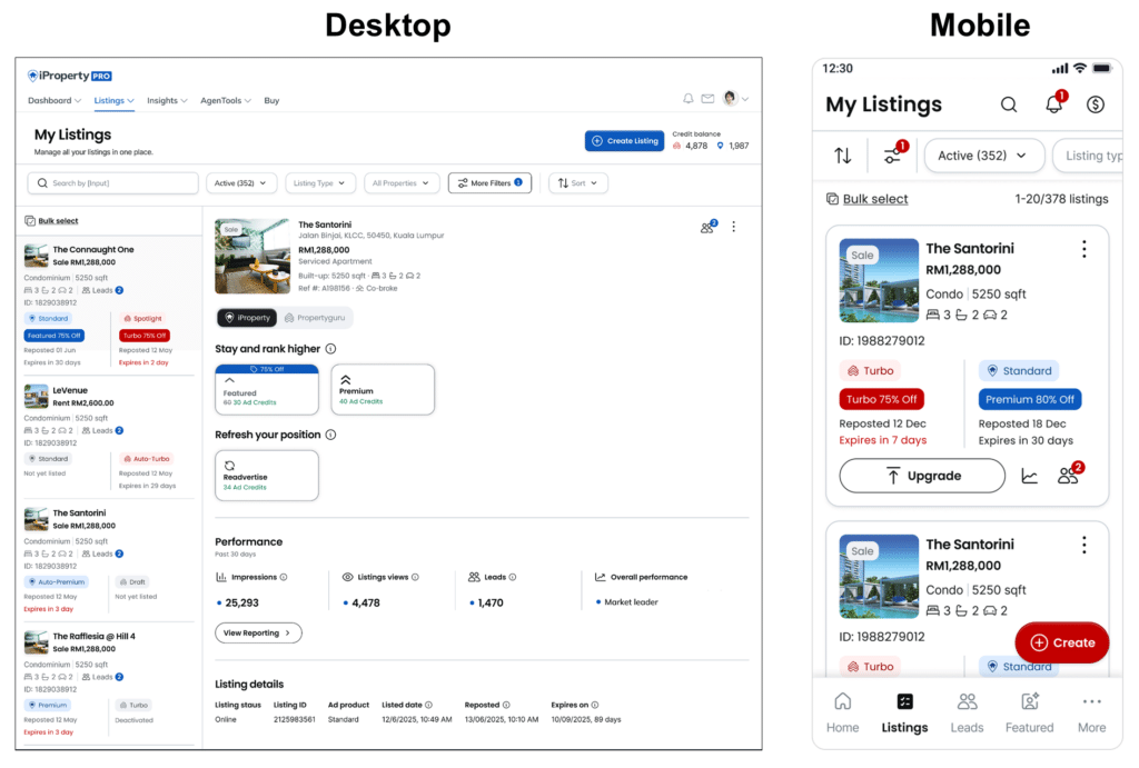 - - A consistent Listing Management layout across iProperty PRO and AgentNet on web and mobile app