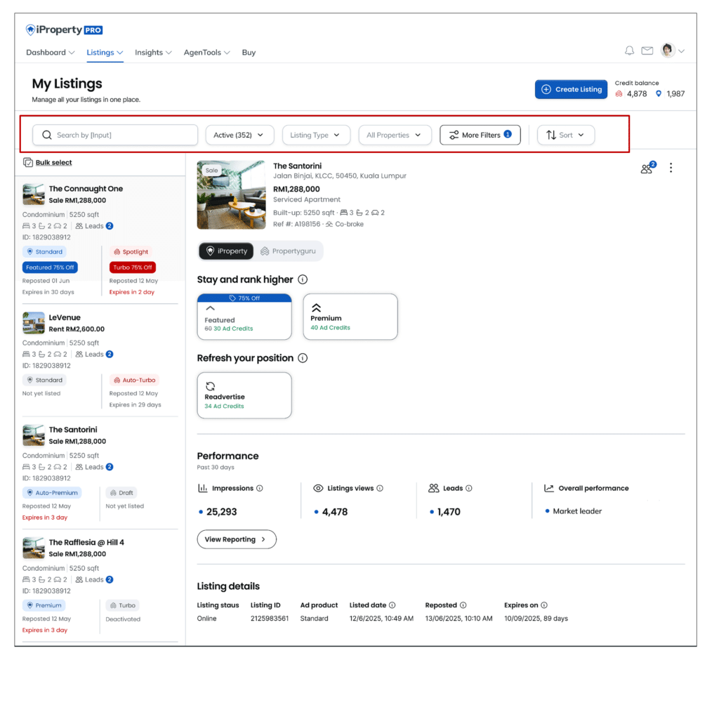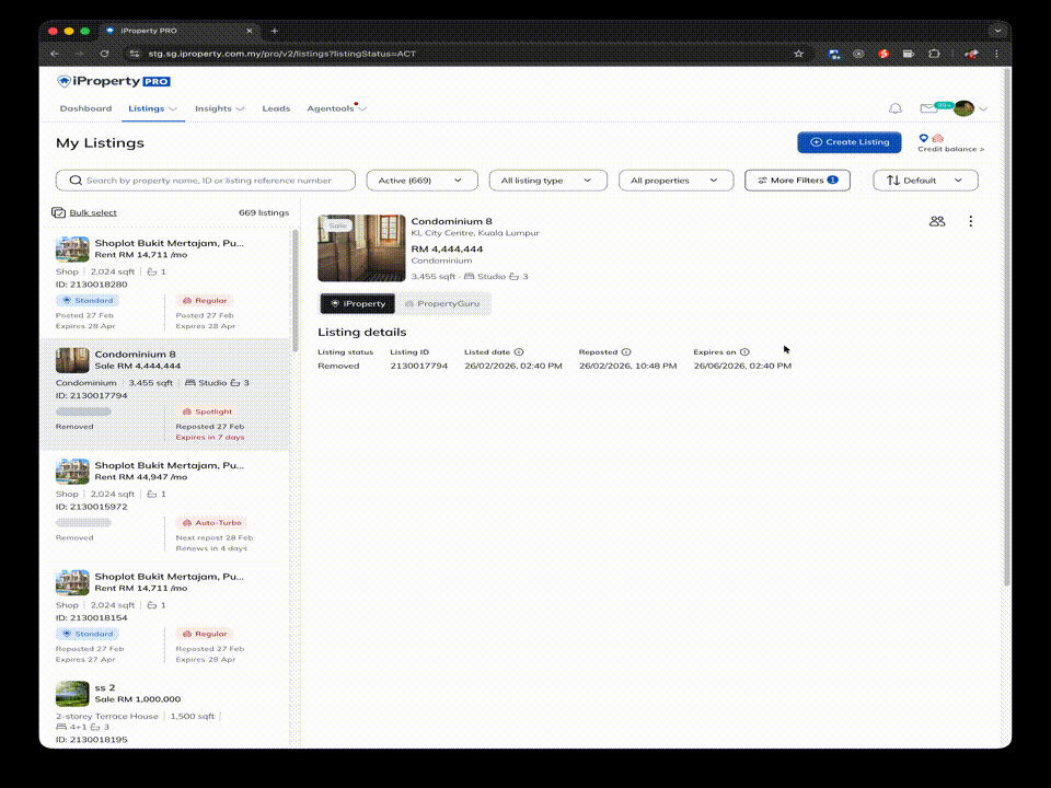 Updated Listing Management introduces a refreshed layout that provides a consistent Listing Management experience for agents using iProperty PRO and AgentNet (PropertyGuru). This update focuses on improving clarity and ease of use. While the layout has been refreshed, existing features remain unchanged.